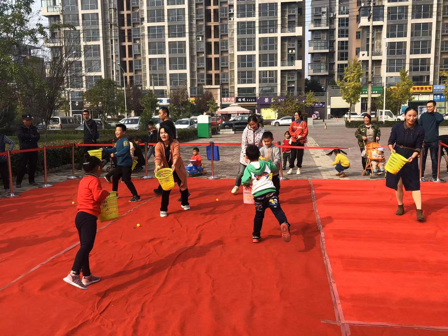 下午14:30,趣味運(yùn)動(dòng)會(huì)正式開始,本次運(yùn)動(dòng)會(huì)共設(shè)6個(gè)項(xiàng)目:神投手、抬轎子、搶凳子、氣球粘紙杯、摸石頭過河、拔河等比賽。運(yùn)動(dòng)會(huì)當(dāng)天,200余名小區(qū)居民熱情高漲,摩拳擦掌,帶領(lǐng)著小朋友們積極參與。