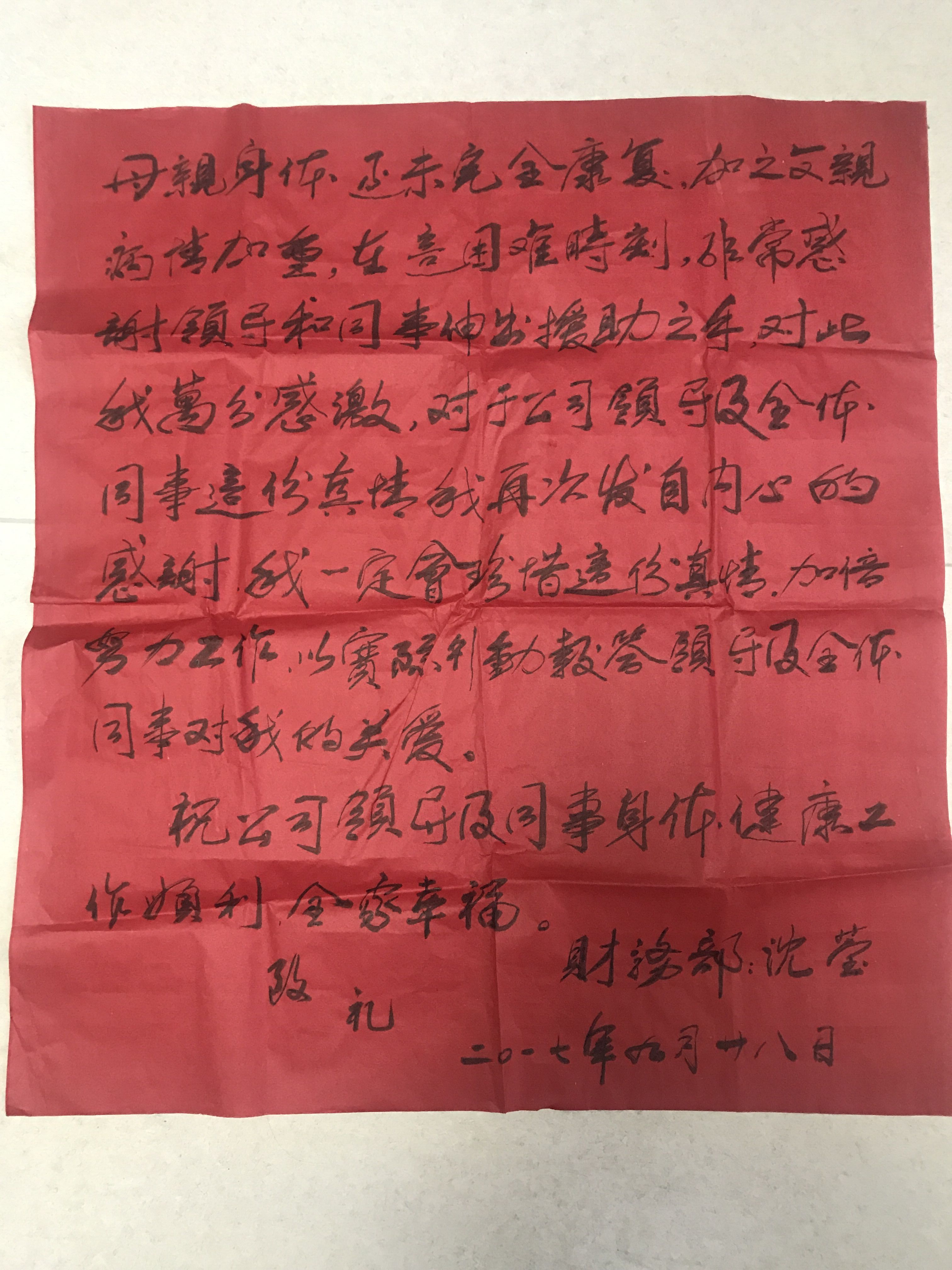 大愛(ài)無(wú)疆,真情永在,公司黨委、工會(huì)得知此事后,迅速發(fā)出愛(ài)心捐助倡議書(shū),號(hào)召公司全體職工為沈瑩捐款,幫助她走出困境。倡議一經(jīng)發(fā)出,立即得到了大家的積極響應(yīng),紛紛伸出援助之手,一個(gè)星期內(nèi),就收到愛(ài)心善款70000余元。